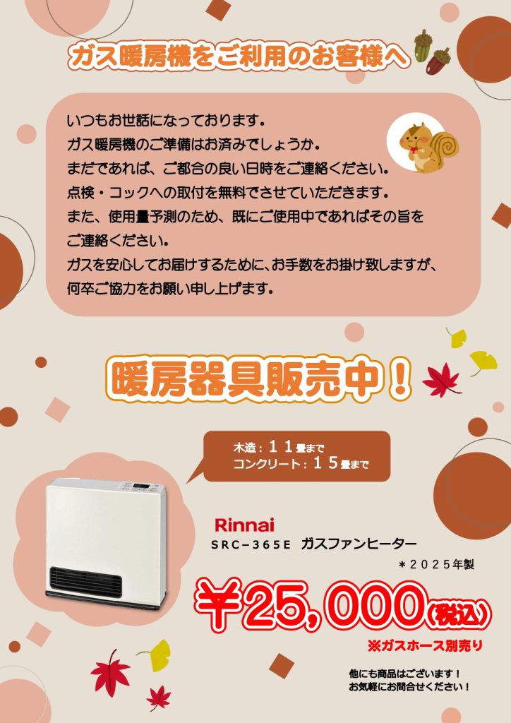 様々な種類のガスファンヒーターもお値打ち価格で販売しておりますので、